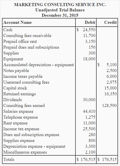 - Enter the account balances in the unadjusted trial balance columns andd total the amounts.