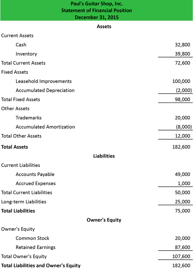 The statement of financial position, often called the balance sheet, is a financial statement that reports the assets, liabilities, and equity of a company on a given date. In other words, it lists the resources, obligations, and ownership details of a company on a specific day.